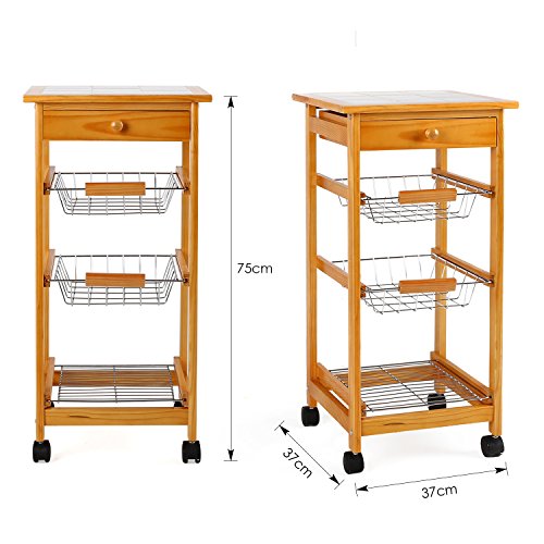 Beschreibung: Praktisch und flexibel: HOMFA Servierwagen geben Ihnen eine Möglichkeit, Morgen am Bett zu frühstücken, Essen zu servieren und so weiter.Ideal für jeder Küche und Esszimmer. Großer Stauraum und stabil: Aus Kiefernholz hergestellt. Transport von Geschirr,Obst,Speisen,Besteck,Kuchen,Rotwein und so weiter. HOMFA Küchenwagen verfügt über eine große Arbeitsplatte und 4 Roller, Sie können viele Dinge darauf stellen und ihn überall schieben. Küchentrolley mit einer praktischen Schublade für Geschirr und Servietten Einfache Struktur, leicht zur Montage Kissta ist stets kundenorientiert, und setzt sich mit ganzer Kraft dafür ein, die Artikel in hoher Qualität mit gutem Preis- und Leistungsverhältnis zu bieten. Wir haben einen exzellenten Kundenservice, und setzen alles daran, um Ihre Probleme zu lösen. Bitte haben Sie Geduld bei der Montage, wenn das Produkt nicht Ihren Erwartungen entspricht, bitte kontaktieren Sie uns zuerst, und teilen Sie uns damit, wo genau die Mängel des Produktes liegen (Qualität, Aussehen, Schäden,…) Material: 100% Kiefernholz Größe: 37x37x75cm belastbar bis 15kg