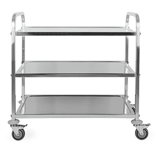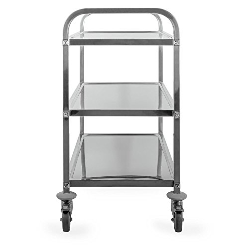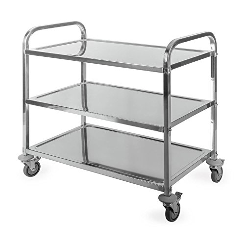 Edelstahl-Servierwagen in klassischem Design für jede Art vonGastronomiegewerbe. 4 leichtläufige Vollgummirollen, die einzeln fixierbar und um 360° drehbarsind. Stabile Stahlböden mit großen Stellflächen und je 28 cm Zwischenabstand nachoben. Der The Great Gatsby von OneConcept ist ein edler Servierwagen inklassischem Design und dank seiner stabilen Konstruktion bestens für dentäglichen Gebrauch in Großküchen, Kantinen, Kitas und Pflegeheimen eignet. Die drei großen Böden bieten mit ihren 28 cm Zwischenabstand und 44 x 84 cmgroßen Stellflächen genügend Platz für allerlei Geschirr, Besteck , Gläser und viele weitere Küchenutensilien. 4 kugelgelagerte Leichtlaufrollen aus Vollgummi sorgen für minimalenRollwiderstand und lassen sich einzeln per Feststellbremse schnell und festfixieren. Mit ihren ebenfalls kugelgelagerten Gelenken ist jede Rolle um 360°drehbar und bietet daher maximale Wendigkeit zwischen enger Bestuhlung und ungünstig stehenden Hochzeitsgästen. Der Aufbau des The Great Gatsby's ist kinderleicht und bedarf neben desbeiliegenden Imbus-Schlüssels keinerlei weiterer Werkzeuge. Eigenschaften • 480 kg maximale Belastung• 3 Tabletts• 0,8 mm Tablettdicke• 28 cm Tablettabstand Lieferumfang • 3 x Boden• 2 x Seitenteil• 4 x Rollen• 12 x Unterlegklammer• 12 x Schraube• 4 x Unterlegscheibe• 4 x Schraubenmutter• Imbus-Schlüssel• bebilderte Anleitung Abmessungen • ca. 101 x 96 x 56 cm (BxHxT)• Gewicht: ca.13,5 kgWeitere Artikel aus der Kategorie Servierwagen amazon.de/b/?me=ABV9J41D2VYA9&node=2880533031Besuchen Sie unseren OneConcept Markenshopamazon.de/gp/node/?me=ABV9J41D2VYA9&node=3633432031