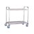 Edelstahl Servierwagen mit 2 Böden Der Servierwagen RCSW-2 von Royal Catering besticht durch klassisches Design in Kombination mit sehr gut verarbeiteten Materialien. Durch 2 stabile Böden ist der Abräumwagen äußerst belastbar und langlebig. Die Verwendung von Edelstahl ermöglicht den täglichen Einsatz sowohl in Großküchen, Kantinen als auch in Kindertagesstätten, Pflegeheimen oder für den ambitionierten Hobbygastronomen. Gehärteter Edelstahl ist hygienisch, leicht zu reinigen und zeigt auch Ihren Kunden, wie hoch Ihr eigener Qualitätsanspruch ist. Der Edelstahl Servierwagen verfügt über 4 Leichtlaufrollen aus Vollgummi für wenig Rollwiderstand und eine geringe Geräuschentwicklung. Alle Rollen sind kugelgelagert und um 360° drehbar, wodurch der Wagen sehr wendig ist und sich Ihren Bedürfnissen jederzeit anpasst. Eine spezielle Konstruktion mit Kontermutter erlaubt eine einfache Montage und eine wackelfreie Ausrichtung. Jedes Rad hat eine separate Feststellbremse, sodass ein fester Stand gewährleistet ist. Außerdem ist um jedes Rad ein Rammschutz montiert, sodass sowohl Ihr Inventar als auch der Wagen lange Zeit gut erhalten bleiben. Der Aufbau des Servierwagens ist kinderleicht und erfordert keine Fachkenntnisse. Eine deutsche Anleitung liegt natürlich ebenfalls bei. Technische Details RCSW-2 aus Edelstahl gefertigt maximale Belastung: 320 kg 2 Ablageböden Tablettdicke: 3 cm Tablettabstand: 62 cm Maße: 101 x 55 x 96,50 cm Gewicht: 11 kg