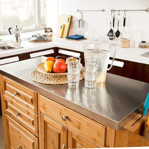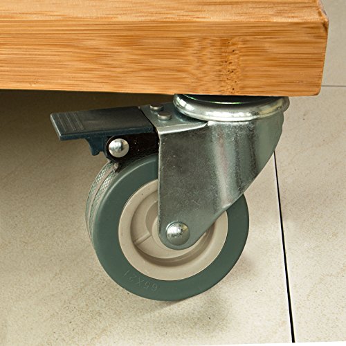 Dieser Luxus-Küchenwagen ist aus hochwertigen und robusten Bambus und MDF. Die Arbeitsfläche aus Edelstahl bietet viel Platz zum ablegen und zubereiten von Lebensmitteln. Ausgestattet ist dieser praktische Küchenwagen mit vier geschlossenen Schubladen, einem geschlossenem Geschirrschrank indem Sie viele Utensilien verstauen können und einem Handtuchhalter. Der Küchenwagen hat vier große, stabile Gummirollen, auf denen sich der Küchenwagen leicht auf jeder Oberfläche verschieben lässt. Bambus ist ein schnell nachwachsender Rohstoff, der sich durch seine besondere Stabilität und schöne Oberfläche auszeichnet.
