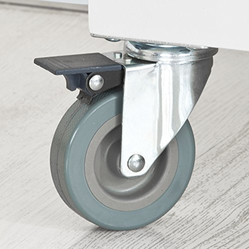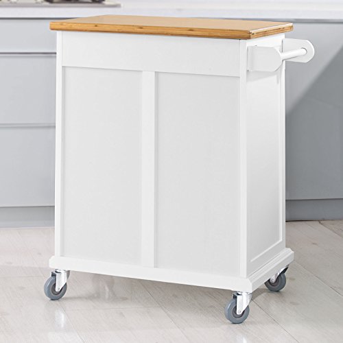 Die Arbeitsfläche aus Bambus bietet viel Platz zum ablegen und zubereiten von Lebensmitteln. Ausgestattet ist dieser praktische Küchenwagen mit einer geschlossenen Schublade, einem geschlossenem Geschirrschrank indem Sie viele Utensilien verstauen können und einem Handtuchhalter. Der Küchenwagen hat vier große, stabile Gummirollen, auf denen sich der Küchenwagen leicht auf jeder Oberfläche verschieben lässt.