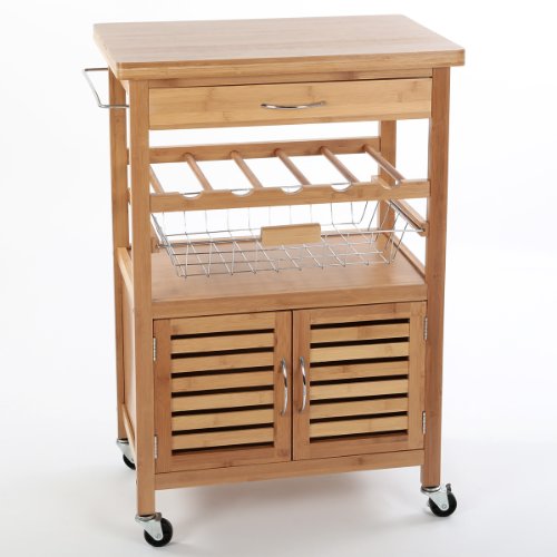 Der robuste Küchenwagen, wird aus massivem Bambus gefertigt. Das stilvolle Möbelstück, überzeugt durch seine praktischen Funktionen sowie über ein edles Design. Durch die Rollen unter den Füßen, ist dieser Küchenwagen besonders flexibel und somit überall einsetzbar. Ob in der Küche, im Eingangsbereich, Wohnzimmer, Terrasse oder auf dem Balkon. Der praktische Helfer im Alltag, sowie dekorativer Blickfang!