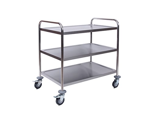 komplett aus hochwertigen Edelstahl (rostfrei)Anti-Schock Matten für geräuscharmen und sicheren Transport3 BordeTablett Abstand ca. 270 mm4 hochwertige Leichtlaufräderhöhenverstellbar für perfekte Justierung2 Fußbremsen für sicheres Abstellenstabile Ausführung hohe Tragkraftschnelle und einfache Montage Gewicht: 13 kgAbm.: B 860 x T 540 x H 940 mm
